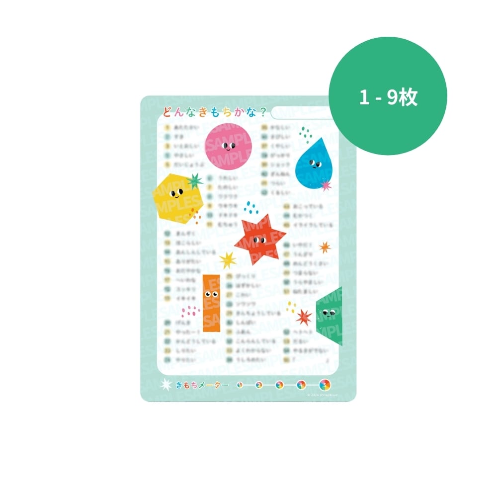 ・気持ち(感情)と大切にしたいこと(ニーズ)を表現するための言葉をそれぞれ54個+空欄の55個を片面ずつに載せた下敷きです。下敷きという子どもたちに身近な文房具に心のお守りとしての機能をプラスした「心の下敷きさん」です。